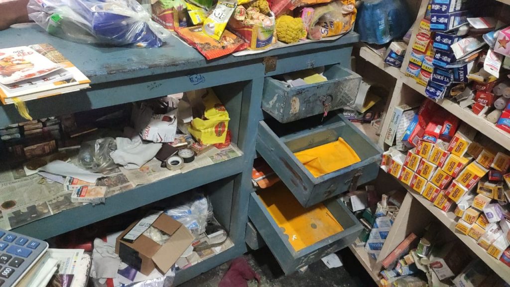 नवगछिया : दुर्गेश, शनिवार की देर रात ढोलबज्जा बाजार में, अज्ञात चोरों द्वारा एक किराना दुकान की दिवार तोड़ 1.10 लाख रुपए व सामानों की चोरी कर लिए जाने की बात सामने आई है. दुकानदार जयप्रकाश जायसवाल ने बताया कि- हमलोग दुकान के दो-तल्ले मकान की कमरे में सोए हुए थे. नीचे देर रात करीब 12:00 बजे बगल के राम मंडल की खाली जमीन होकर आए चोरों ने मेरे गोदाम की वेंडिलेटर वाली दिवार की ईंट तोड़ कर अंदर घुसे थे.