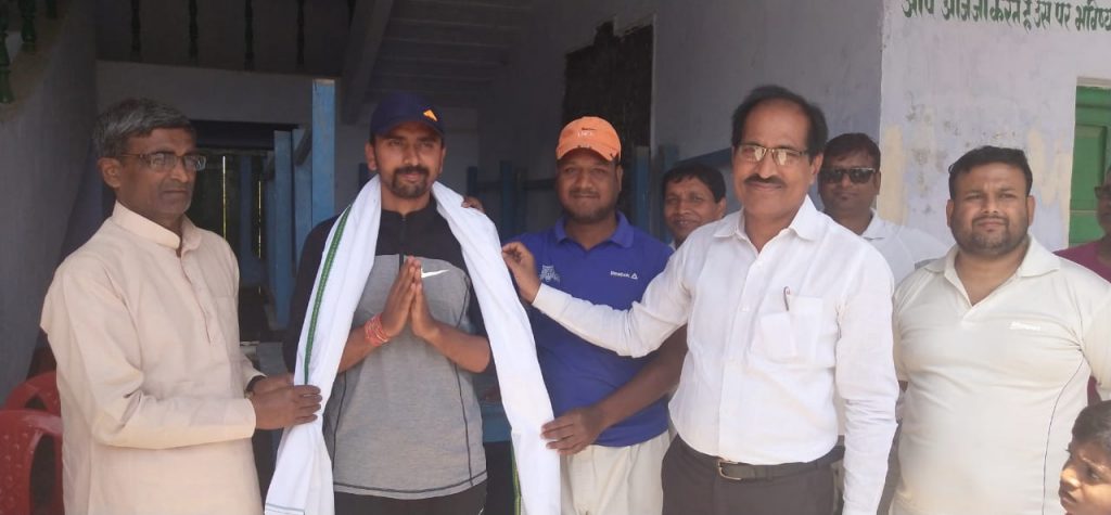 नवगछिया: नवगछिया पुलिस मेन्स एसोसियेशन के अध्यक्ष सह क्रिकेट खिलाडी अभिनाश कुमार सिंह के दरोगा बनने पर आज हाई स्कूल नवगछिया मे नवगछिया खेल संघ के अध्यक्ष एवं प्राचार्य सुरेन्द प्रसाद सिह के द्वारा अंग वस्त्र देकर सम्मानित किया गया एवं क्रिकेट टीम के ओर से मोमेन्टो प्रदान किया गया।