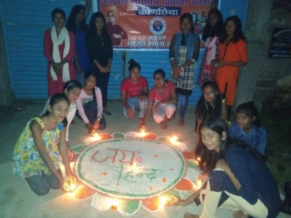 दीपावली के अवसर पर जगह जगह लोगो ने देश के वीर जवानों को याद किया एवं देश के लिए दी गई कुर्बानी पर उन्हें दीप जलाकर श्रधांजलि अर्पित किया गया. नवगछिया के नगरह पंचायत में दीपावली की शाम अखिल भारतीय विद्यार्थी परिषद के द्वारा एक दीया शहीदों के नाम जलाया गया. कार्यक्रम का नेतृत्व अभाविप की एमएएम कॉलेज की अध्यक्ष स्मृति सिंह कर रही थी. समृति ने कहा कि त्योहार के दिन हमें शहीदों को और देश के जांबाज सैनिकों को जरूर याद करना चाहिए. इस अवसर पर अभाविप कार्यकर्ता स्मृति सिंह, ब्यूटी कुमारी, निभा कुमारी, साक्षी कुमारी, स्वाति प्रिया, तृप्ति कुमारी, रौशनी कुमारी, सोनम कुमारी कोमल कुमारी, निकिता कुमारी व अन्य भी थे. बिहपुर के बभनगामा में मध्यदेशी समाज के निरंजन साह ने अपने पूरे परिवार के साथ शहीदों को याद करते हुए श्रधांजलि अर्पित किया. मौके पर मोनू प्रकाश, स्वाति व अन्य मौजूद थे.