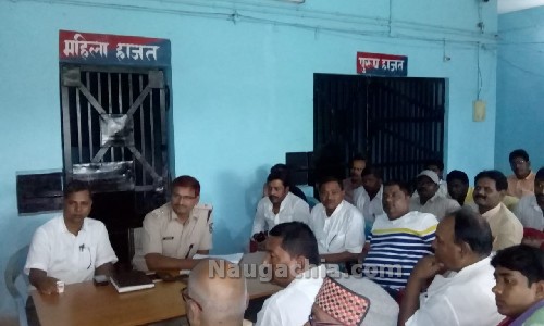 नवगछिया : नवगछिया मॉडल थाना में शनिवार को दुर्गा पूजा को शांतिपूर्ण संपन्न कराने को लेकर शांति समिति की बैठक थानाध्यक्ष लाल बहादुर की अध्यक्षता में आयोजित की गई. बैठक में नवगछिया सीओ विद्यानंद राय सहित नवगछिया नगर अध्यक्ष प्रतिनिधि डब्लू यादव व थाना क्षेत्र के सभी जनप्रतिनिधियों व गणमान्य लोगों ने भाग लिया. बैठक में नगर अध्यक्ष प्रतिनिधि डब्लू यादव ने कहा कि शहर में दुर्गा पूजा धूमधाम से मनाया जाता है. बड़ी संख्या में मां बहनें एक पूजा से ही मंदिर में पूजा अर्चना के लिए आती है.
