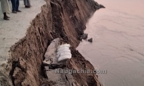 कोसी नदी तट पर शुरू हुआ भीषण कटाव रुकने का नाम नहीं ले रहा है। कटाव से लगातार किसानों की उपजाऊ जमीन व तटबंध के किनारे बसे लोगों का आशियाना कोसी गर्भ में समा रहा है। हालांकि सिंहकुंड में जल संसाधन विभाग की टीम कटाव रोधी कार्य में जुटी है, किन्तु तेज कटाव के सामने यह नाकाफी साबित हो रहा है। गुरुवार को लक्ष्मण साह के घर का आधा हिस्सा नदी के आगोश में समा गया। शेष बचा हिस्सा कभी भी नदी में समा सकता है।