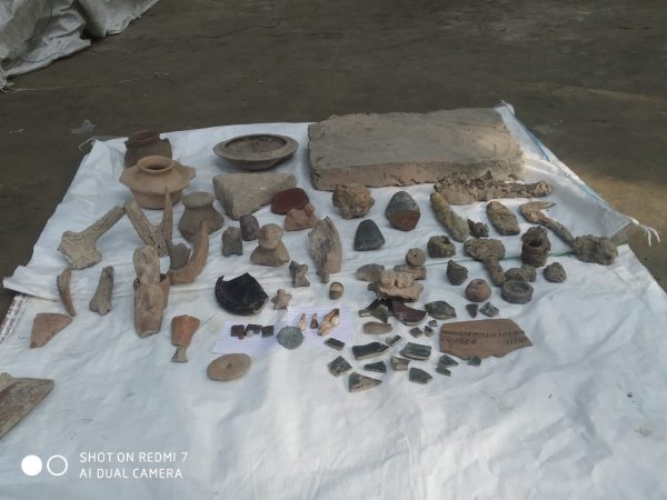 नवगछिया – कोसी के जलस्तर में कमी आने के साथ ही बिहपुर प्रखंड के जयरामपुर गांव के गुवारीडीह बहियार में पुरातात्विक और ऐतिहासिक महत्व वाली चीजों के मिलने का सिलसिला शुरू हो गया है. जयरामपुर गांव के ग्रामीण अविनाश कुमार के नेतृत्व में चलाए जा रहे सर्च अभियान के क्रम में ग्रामीणों की आंखें तब फटी रह गई जब एक पुराने दीवार का स्पष्ट साक्ष्य सामने आया. यह दीवार गुवारीडीह टीले के दो फीट नीचे से शुरू हुआ है. अनुमान लगाया जा रहा है कि मिले साक्ष्य दीवार का ऊपरी हिस्सा है और इसका नीचे का हिस्सा कोसी नदी के सतह से काफी नीचे है. ग्रामीणों ने सावधानी पूर्वक करीब 10 फीट चौड़ाई में दीवार को बाहर निकाला है. दीवार में 1 फीट लंबे और 1 फीट चौड़े ईट का प्रयोग किया गया है. मालूम हो कि चानन नदी में मिले ईंट की लंबाई चौड़ाई थी गुवारीडीह में मिले दीवार की ईंटों से बराबर है. जिससे अनुमान लगाया जा रहा है कि चानन और गुवारीडीह में एक ही तरह की सभ्यता रही होगी. इतिहासकार उक्त अवशेष को बौद्ध कालीन अवशेष बता रहे हैं तो कुछ इतिहासकार इसे कुषाण कालीन भी कह रहे हैं. जयरामपुर के ग्रामीण अविनाश कुमार के नेतृत्व में चलाए जा रहे सर्च अभियान में और भी कई तरह की चीजों को कोसी नदी के कछार से निकाला गया. जिसमें सुंदर कलाकृतियों वाले मिट्टी के बर्तन, पत्थरों को खींच कर बनाए गए औजार और जानवरों की हड्डियां और दांत शामिल है.