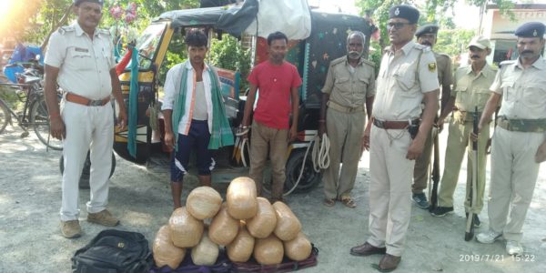 नवगछिया : पुलिस जिला नवगछिया अंतर्गत कोसी पार कदवा सहायक थाना की पुलिस द्वारा लगातार वाहन चेकिंग के दौरान बिना नंबर की एक टेंपो से तीन बैग में बंद लगभग 23 किलो गांजा बरामद किया गया। साथ ही इस टेंपो पर सवार दो महिला एवं एक पुरुष गांजा तस्कर सहित टेंपो चालक को भी गिरफ्तार कर लिया गया है।