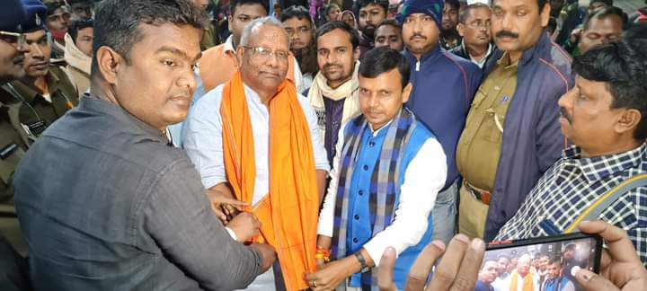 नवगछिया के भाजपा कार्यकर्ताओं ने जिला अध्यक्ष विनोद कुमार मंडल के नेतृत्व में रविवार को राज्य के डिप्टी सीएम तारकिशोर प्रसाद का जोरदार स्वागत किया है. डिप्टी सीएम नवगछिया रेलवे स्टेशन पर पटना जाने के लिए पहुंचे थे. मौके पर डिप्टी सीएम ने कार्यकर्ताओं से हालचाल लिया और सांगठनिक स्थिति की भी जानकारी ली.
