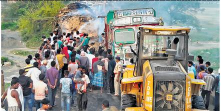 रविवार को जाम हटाने के लिए जेसीबी मशीन लाई गई पर जाम नहीं हट सका। रविवार शाम को एक बार फिऱ ट्रक से धुआं निकलने लगा जिसे समय रहते ही काबू कर लिया गया। देर रात धीरे-धीरे गाड़ियों को निकालने का काम शुरू हुआ। दोनों ट्रकों के ड्राइवर और खलासी ने कूदकर जान बचाई, फिर हो गए फरार