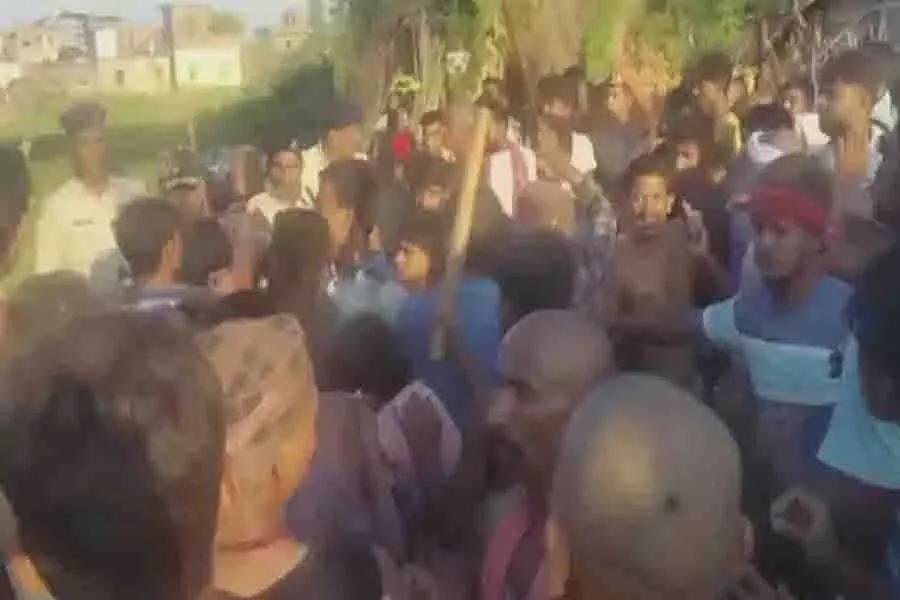 Thank you for reading this post, don't forget to subscribe!जानकारी के अनुसार, बकरीद को लेकर पुलिस ने फ्लैग मार्च निकाला था। इसी दौरान बदमाश बरुन मंडल को खोजने पुलिस उसके घर पर गयी। पुलिस के बुलाने पर बरुन का भतीजा राजीव मंडल घर से बाहर निकला। पुलिस को देख राजीव भागने लगा। तभी पुलिस ने गोली चला दी। राजीव के घायल होने के बाद आक्रोशित ग्रामीणों ने पुलिस पर हमला कर दिया। पुलिस के कई वाहनों को क्षतिग्रस्त कर दिया। एक दर्जन बाइक को ग्रामीणों ने जब्त कर ली। घायल राजीव और एसडीपीओ के गार्ड को इलाज के लिए अस्पताल में भर्ती कराया गया है। काफी संख्या में पुलिस घटनास्थल पर गयी है। गांव में स्थिति तनावपूर्ण है। वरीय पुलिस पदाधिकारियों के जाने के बाद भीड़ ने थानाध्यक्ष सहित अन्य जवानों को छोड़ा।