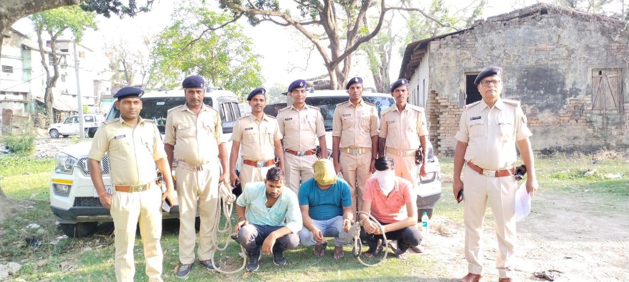 नवगछिया में घटनास्थल एसपी निधि रानी के सामने बालू में पड़े युवक के शव को निकाला गया।