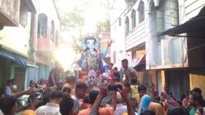 गणेश जी की प्रतिमा को नगर भ्रमण कराते गाजे बाजे और डीजे की धुन पर अविर के साथ युवा धीरकते नजर आये वही किमिटी से रवि शर्मा ने बताया कि शहर के गौशाला के परिसर में स्थित पोखर में नम आँखों से भगवान गणेश जी को अंतिम विदाई दी गयी. इस अवसर पर आयोजक दिनेश केडिया, अमित चिरानिया, शम्भू चिरानिया, रवि शर्मा, पंकज टीव्रेवाल, अतन सिंह, रतन सिंह, चंद्रशेखर शर्मा के साथ सेकडो लोगो ने भाग लिया.
