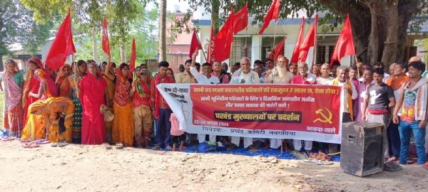 नवगछिया । भाकपा-माले प्रखंड कमिटी नवगछिया के बैनर तले सैकड़ों किसान मजदूर, महिलाएं, छात्र, नौजवानों ने नवगछिया अंचल कार्यालय के समक्ष प्रदर्शन किया।