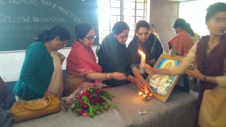 नवगछिया : आखिल भारतीय विद्यार्थी परिषद् नवगछिया ईकाई के छात्रा इकाई के द्वारा मदन अहिल्या महाविद्यालय में अंतरराष्ट्रीय महिला दिवस मनाया गया. इस अवसर पर मुख्य अतिथि के रूप में मदन अहिल्या महाविद्यालय के प्रभारी प्रधानाचार्य डॉक्टर सुदामा यादव उपस्थित थी. कार्यक्रम का उद्घाटन विधिगत रूप से प्रभारी प्रधानाचार्य ने किया.