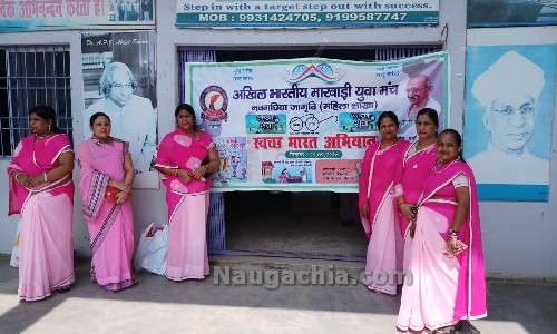 नवगछिया : मारवाड़ी युवा मंच नवगछिया जागृति महिला शाखा ने शनिवार को अखिल भारतीय मारवाड़ी युवा मंच द्वारा चलाये जा रहे स्वच्छ भारत अभियान स्वच्छता ही सेवा के तहत पहले चरण में कार्यक्रम की शुरुआत की. पहले चरण चित्रांकन एवं स्लोगन प्रतियोगिता का आयोजन किया गया. प्रतियोगिता में नवगछिया सावित्री पब्लिक स्कूल के 65 विद्यार्थियों ने भाग लिया. जिसमें 51 छात्र-छात्राओं ने चित्रांकन और 11 छात्र-छात्राओं ने स्लोगन प्रतियोगिता में भाग लिया.