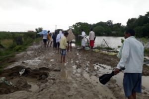 Thank you for reading this post, don't forget to subscribe!इस्माईलपुर बिंद टोली के बीच स्पर संख्या छह एन के कटने के बाद स्थिति गंभीर बनी हुई है. नदी रिंग बांध के करीब पहुच गया है. तेतरी जहान्वी चौक 14 नंबर सड़क पर पानी के बहाव जरी है. छोटी परबत्ता के पास सड़क से तेज रिसाव जरी रहने से जगतपुर पंचायत बाढ़ की चपेट में आ गया है. कलबलिया धार के पास 14 नवर सड़क में काफी दबाव बना हुआ है. और पानी का रिसाव भी हो रहा है. सड़क में दरार आ गयी है. स्थिति नाजुक बनी हुई है. 14 सड़क से बाढ़ के पानी के बहाव खगड़ा एवं गेरैया के पास से होने व कलबलिया धार के पास सड़क की स्थिति काफी दयनीय होने से सड़क पर आवागमन ठप हो चुका हैं. आवागमन प्रभावित होने से दर्जनों गांव के लोगो को परेशानियों का सामना करना पड़ रहा है. गोसंयगांव जमींदारी बांध पर भी नदी का दबाव बना हुआ है.