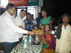 नवगछिया : नवगछिया की सेवार्थ सामाजिक संस्था सेवार्थ रोटी बैंक नामक कार्यक्रम के तहत देर शाम स्टेशन परिसर में मौजूद जरूरतमंदों को मुफ्त में शुद्ध भोजन चावल, दाल और सब्जी का वितरण किया गया.