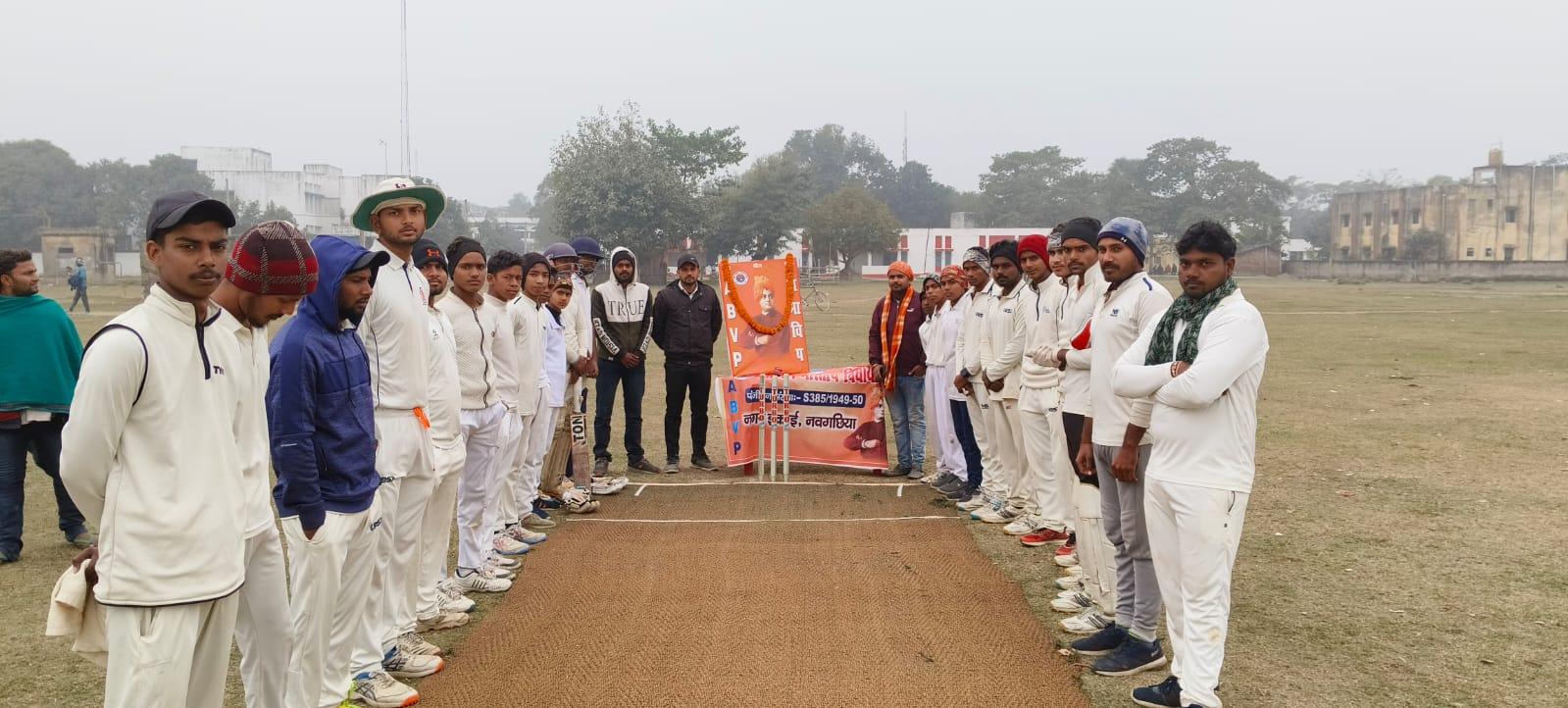 नवगछिया नगर इकाई द्वारा”युवा सप्ताह दिवस” मनाया गया,जिसमें क्रिकेट टूर्नामेंट कार्यक्रम का आयोजन किया गया!वही मैंच में नवगछिया और नारायणपुर की टीम ने हिस्सा लिया जिसमें नवगछिया टीम प्रथम स्थान पर रहा और नारायणपुर दुसरे स्थान पर रहा ! वही विजेता टीम को नगर उपाध्यक्ष कौशल सर ने ट्राफी और पर्यावरण संरक्षण हेतु एक वृक्ष देकर सम्मानित किया गया!उपविजेता टीम नारायणपुर को नगर उपाध्यक्ष श्री ओम सिंह ने सम्मानित किया