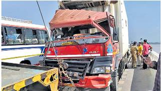 Thank you for reading this post, don't forget to subscribe!पुल पर ट्रक के दुर्घटनाग्रस्त होने के बाद पुल पर करीब दो घंटे तक जाम लग गया। इसके बाद वन वे परिचालन कर गाड़ियों को किसी तरह निकाला गया। क्रेन मंगा कर पुलिस ने पुल से दुर्घटनाग्रस्त ट्रक को खींच कर किनारे लगवाया, इसके बाद पुल की दोनों साइड से वाहनों का आवागमन सुचारू रूप से संचालित हो सका।