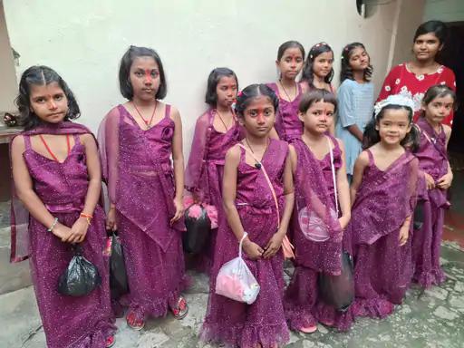 कन्या पूजन के समय छोटी-छोटी कन्याओं को भोजन कराने के बाद उन्हें उपहार देकर विदा करने की परंपरा है। इस अवसर पर कन्याओं को प्रसाद के साथ श्रृंगार सामग्री, फल (जैसे केला और सेब) और लाल रंग के वस्त्र या चुनरी भेंट की जाती है। शास्त्रों के अनुसार, मां दुर्गा को लाल रंग अत्यंत प्रिय है, और श्रृंगार सामग्री को पहले मां दुर्गा को अर्पित करने के बाद कन्याओं को बांटा जाता है।