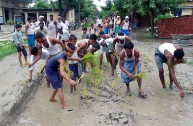 नवगछिया : पथ निर्माण विभाग के रवैए से अजीज होकर आज रंगरा जिला पार्षद शबाना आजमी एवं जदयू नेता गणपत मंडल के नेतृत्व में दर्जनों लोगों ने गड्ढों में तब्दील हो चुके रंगरा तिनटंगा मार्ग पर विभाग को आईना दिखाने के लिए धान रोपनी किया. रंगरा, गोपालपुर एवं इस्माईलपुर सहित तीन तीन प्रखंडों को एन एच 31 सड़क मार्ग से जोड़ने एवं इन तीन प्रखंडों के कुल 25 पंचायतों की दियारा सहित लगभग एक लाख की आबादी की लाइफ लाइन माने जाने वाली यह सड़क काफी जर्जर हो चुकी है.