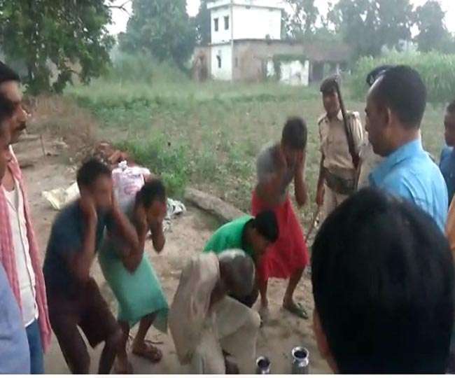 शपथ के दौरान एक युवक को हंसी आ गई। इसपर भ्रमणशील प्रखंड पशुपालन पदाधिकारी डॉ. ललन कुमार को गुस्सा आ गया। उन्होंने उस युवक की पिटाई कर दी। बात यहीं नहीं रुकी। कतार में शामिल वृद्ध समेत सभी लोगों से कान पकड़कर उठक-बैठक कराई। हद तो यह हो गई, जब सभी से उनके पानी भरे लोटे को प्रणाम कराया गया।