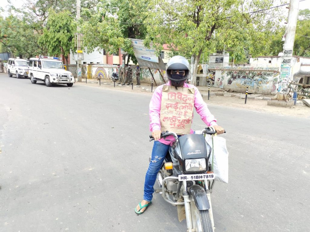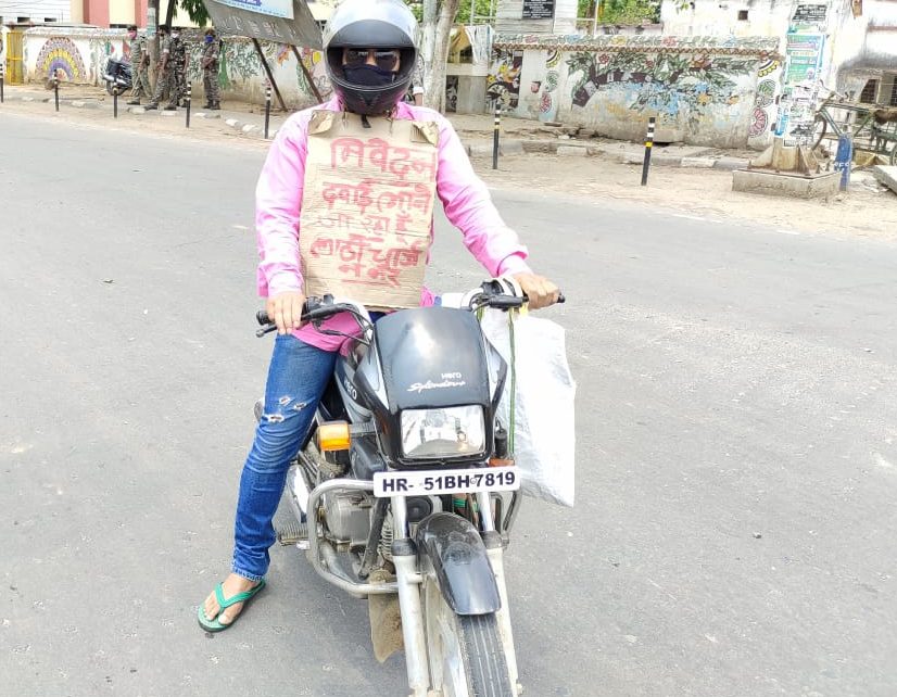 बांका शहरी क्षेत्र के बाबुटोला निवासी छोटू कुमार ने बताया कि घर पर परिवार के सदस्य बीमार है। दवाई लाना जरूरी थी। सड़क पर पुलिस का सख्त पहरा है। हर आने-जाने वालों से कड़ाई से पूछताछ हो रही है और डंडा भी बरसाया जा रहा है। लॉकडाउन लागू होने से पुलिस कुछ भी सुनने को तैयार नहीं है। दवाई लाना जरूरी था। इसलिए एक तरकीब सुझी और पुलिस की मार से बचने के लिए कागज के गत्ते पर निवेदन है कि दवाई लेने जा रहा हूं लाठीचार्ज न करें लिखकर अपने बाइक से निकल पड़ा।