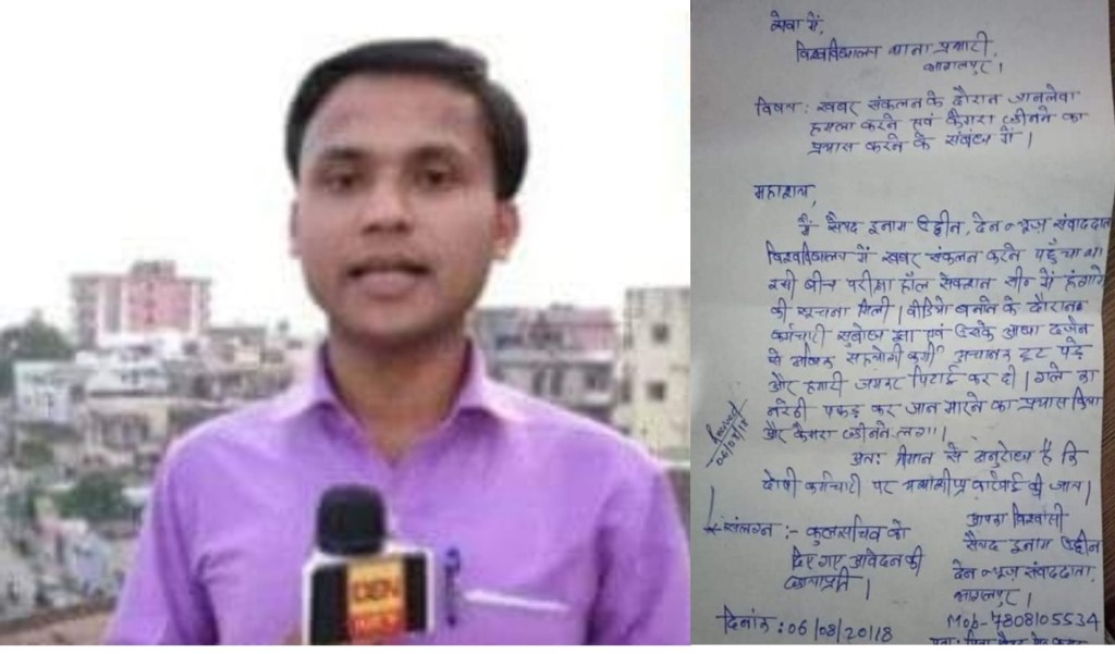 देश में पत्रकारों पर हमले लगातार बढ़ते ही जा रहे हैं। इस बार बिहार के भागलपुर से खबर है कि यहां डेन न्यूज चैनल के पत्रकार सैयद इमामउद्दीन पर कुछ लोगो ने जानलेवा हमला कर दिया। इस हमले में उन्हें चोट भी आई है। वहीं दूसरी तरफ, भागलपुर के लोगों ने इस हमले की निंदा की है और जल्द से जल्द आरोपियों के पकड़ने की मांग की है।