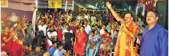 राजू शर्मा ने जब मेरे पर संकट होता है, मेरे दरवाजे पर हनुमान का पहरा रहता है की प्रस्तुति दी। पौड पर हीरा मिश्रा, ढोलक पर मनोज मसीना, हेंडसेनिक प्रशांत मिश्रा, कीबोर्ड पर अजीत सिंह, बेंजो पर बादल ने संगत किया। इस मौके पर साईं भक्त सेवा समिति के अध्यक्ष प्रदीप यादव, सचिव अरुण गुप्ता, आशा गुप्ता, सोनी भारती, व्यवस्थापक पंडित दिनेश चन्द्र झा, विनय पाण्डेय, विष्णु अग्रवाल, विमला देवी, सर्वेश कुमार सिंह, रोहित कुमार सहित हजारों लोग उपस्थित थे।