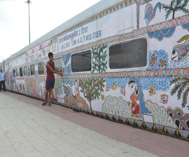 मधुबनी पेन्टिंग से सज-धजकर जब बिहार संपर्क क्रांति एक्सप्रेस ट्रेन निकली तो देखने वाले देखते ही रह गए वहीं इसमें…