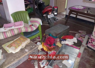 Thank you for reading this post, don't forget to subscribe!जानकारी मिली है कि चोरों ने पांच लाख रुपये से अधिक मूल्य जेवरात और 40 से 45 हजार की नकदी की चोरी कर ली है. पीड़ित परिवार के लोगों ने कहा कि चोरों ने जेवरात और नकदी के अलावा किसी भी चीज की चोरी नहीं की लेकिन घर के सामानों को यत्र तत्र फेंक दिया है. गृहस्वामी के अनुसार बुधवार को जब वे वापस घर आये तो उन्होंने सबसे पहले मुख्य दरवाजा खोला और जब कमरे का दरवाजा खोलने ही जा रहा था कि देखा कि कमरे के दरवाजे का ताला टूटा हुआ है. जब अंदर जा कर देखा तो समान यत्र तत्र बिखड़े पड़े थे.