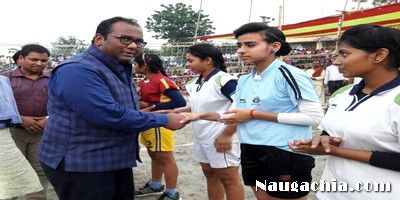 नवगछिया के एस डी एम डॉ आदित्य प्रकाश, बीडीओ सतेंद्र सिंह ने दोनों टीम के खिलाड़ियों से हाथ मिलाकर परिचय पात्र किया व फीता काट कर एवं बाॅल में शाॅट लगाकर किया. ग्रामीण क्षेत्र में महिला बाॅलीबाॅल प्रतियोगिता को देखकर एसडीएम ने कहा ग्रामीण क्षेत्रों में भी प्रतिभाएॅ है जिसके लिए अनुमंडल प्रशासन हर संभव मदद करूँगा. ग्रामीण पुवॆ मुखिया संजय शर्मा ने महवागढ की पुरातत्व सर्वे टीम से जाॅच कराने का मांग किया उन्होंने कहा कि चैती दुर्गा परिसर में निर्माण के लिए खुदाई की जाती है तो पुराने जमाने के अवशेष मिलते है. मैच रेफरी भवेश शर्मा व राजीव कुमार थे. मंच संचालन विभिषण शर्मा ने किया. मौके पर प्रखंड विकास पदाधिकारी सतेंद्र सिंह, जे पी काॅलेज प्राचार्य डॉ बिभांशु मंडल, पूर्व जिला पार्षद सदस्य डॉ अनिता शर्मा, कुन्दन यादव, पैक्स अध्यक्ष शालीग्राम शर्मा, पंकज कुमार पिंकु, शिक्षक राकेश शर्मा, सच्चिदानंद शर्मा, कोकण शर्मा, सरपंच अमित कुमार, नीतु शर्मा सहित सैकड़ों खेल प्रेमी मौजूद थे. देर रात सांस्कृतिक कार्यक्रम का उद्घघाटन पैक्स अध्यक्ष शालीग्राम शर्मा ने फीता काटकर किया. सुरक्षा व्यवस्था को लेकर भवानीपुर थाना के एस आई अनिल सिंह पुलिस बल के साथ मेला की निगरानी तैनात दिखे.