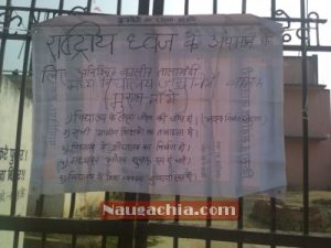 Thank you for reading this post, don't forget to subscribe!विरोध के बाद शनिवार देर शाम डीईओ फूल बाबू चौधरी यमुनिया पहुंचे और वार्ता के बाद झंडा उतारा गया। मामले में प्रभारी प्रधानाध्यापक मो. सरफराज आलम को निलंबित कर दिया गया। लोगों ने बताया कि 26 जनवरी की शाम तक जब शिक्षकों ने झंडा नहीं उतारा तो ग्रामीण आक्रोशित हो गए और पदाधिकारियों को सूचना दी। इसके बाद सूचना पाकर शुक्रवार देर रात झंडा उतारने शिक्षक विद्यालय पहुंचे लेकिन ग्रामीणों ने उन्हें खदेड़ दिया। इस कारण झंडा दो दिनों तक फहराता रहा। शनिवार को परबत्ता थानाध्यक्ष शिव कुमार जब झंडा उतरवाने गए तो ग्रामीणों ने उनकी भी बात नहीं मानी। देर रात जमुनिया गए नवगछिया बीडीओ राजीव रंजन की भी ग्रामीणों ने नहीं सुनी।