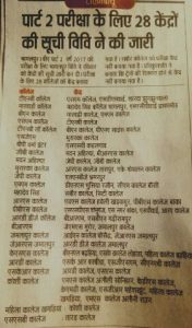 बीए पार्ट 2 वर्ष 2017 की परीक्षा के लिए भागलपुर विवि ने रविवार को केंद्रों की सूची जारी कर दी। परीक्षा के लिए 28 कॉलेजों को केंद्र बनाया गया है। सबौर कॉलेज को परीक्षा केंद्र नहीं बनाया गया है। प्रतिकुलपति ने बताया कि ट्रेनों की दिक्कत होने से केंद्र नहीं बनाया गया है।
