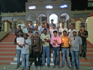 नवगछिया:आईरा के तत्वावधान में नवगछिया स्टेशन चौक पर नवगछिया आईरा के सदस्यों के द्वारा आरा में हुए पत्रकार की हत्या के विरोध में कैंडल मार्च निकाला गया.यह कैंडल मार्च नवगछिया पुलिस जिला के आईरा अध्यक्ष विपिन कुमार ठाकुर की अध्यक्षता में निकाली गई.यह कैंडल मार्च स्टेशन चौक से मुख्य बाजार होते हुए महाराज जी चौक तक गई.जहां पर आरा के दिवंगत पत्रकार की याद में उनकी आत्मा की शांति हेतु प्रार्थना की गई.